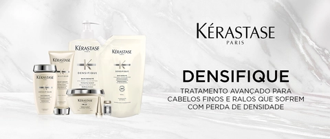 Ritual de manutenção da densidade capilar para cabelos ralos ou com afinamento. Kit Kérastase Densifique Densité Duo encorpa e adiciona textura aos fios.